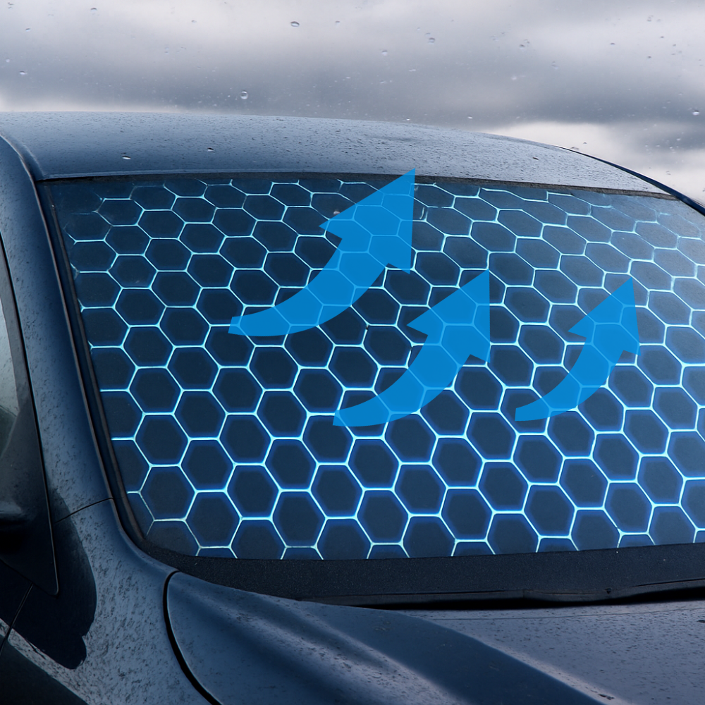 Enjoy months of spotless visibility. ClearShield™ forms a durable hydrophobic coating that shields your glass from rain, grime, and oil buildup — keeping it cleaner for longer and reducing maintenance.