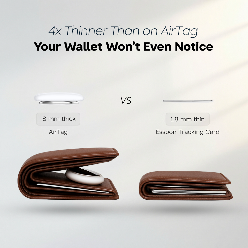 The Essoon Tracking Card uses Apple's Find My network to track your wallet and other essential items. Just set it up with your iOS device using the Find My app, and you'll be able to easily locate your belongings whenever you need to.