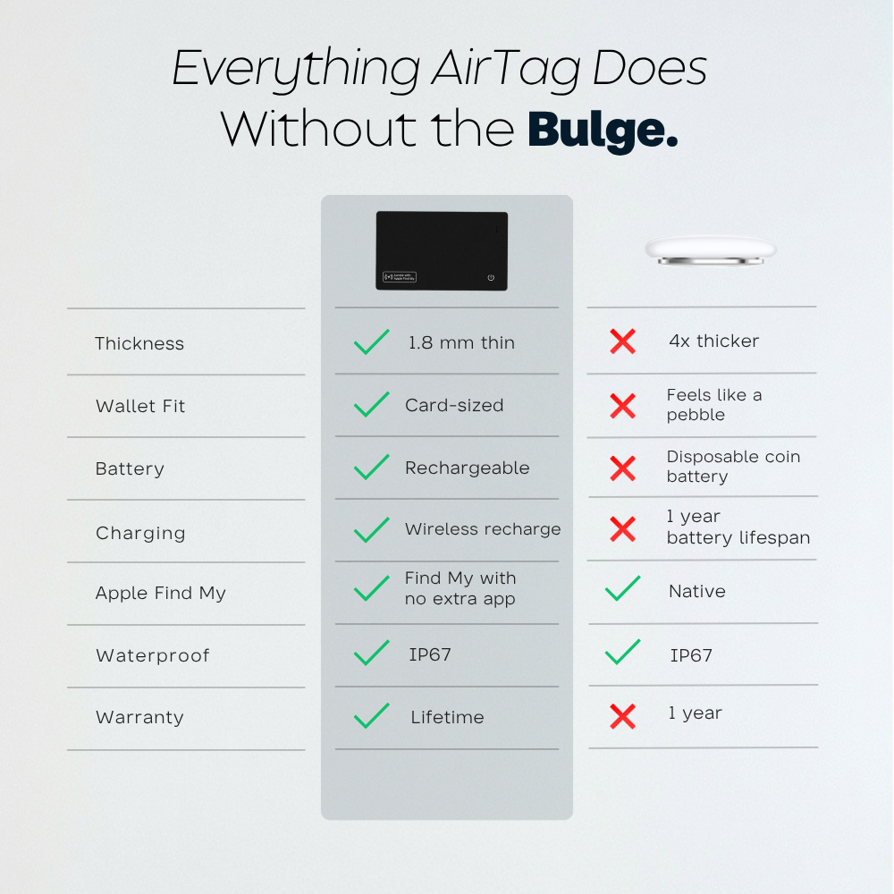 AirTag is brilliant — but it was designed for keys and bags, not slim wallets. That’s why people describe it as “like sitting on a rock.”
