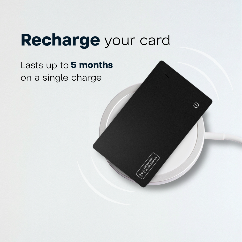 Essoon Tracking Cards are compatible with standard Qi and MagSafe chargers. Use only Essoon-certified chargers and avoid charging it on flammable surfaces. Essoon is not liable for damage resulting from third-party accessories or improper charging conditions.