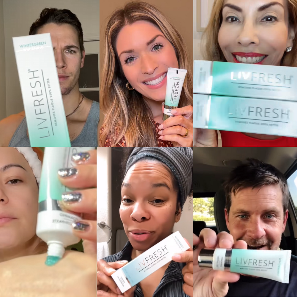 A diferencia de las pastas abrasivas que pueden dañar el esmalte, LIVFRESH blanquea suavemente a nivel molecular , eliminando la placa y restaurando el brillo natural de tus dientes.